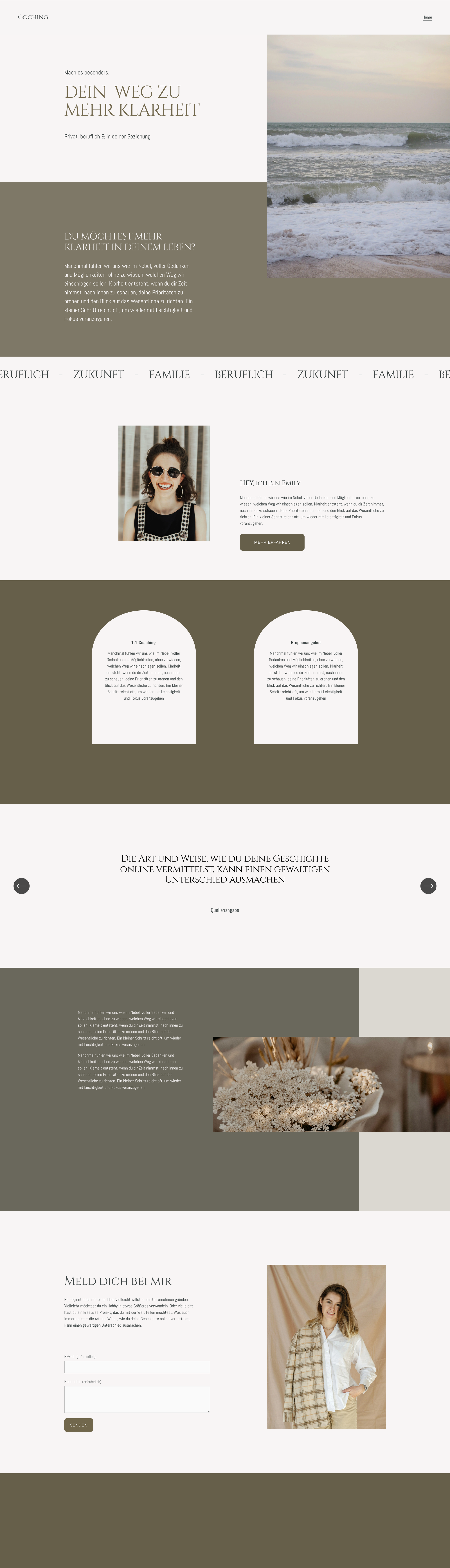 Mein Herzensanliegen ist es, dich als Kund:in so authentisch wie möglich sichtbar zu machen. Bei mir bekommst du keine Website von der Stange, sondern ein Design, das mit Liebe zum Detail genau zu dir passt. Ich entwickle (gemeinsam mit dir) eine Website, bei der du sagen kannst: “That`s me!”